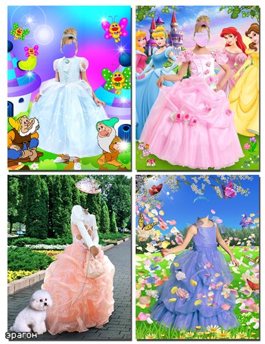 Коллекция детских костюмов для фотомонтажа – Принцесса PSD | 1772 x 2362 | 300 dpi | 105 Мб Количество: 4 костюма Автор: эрагон