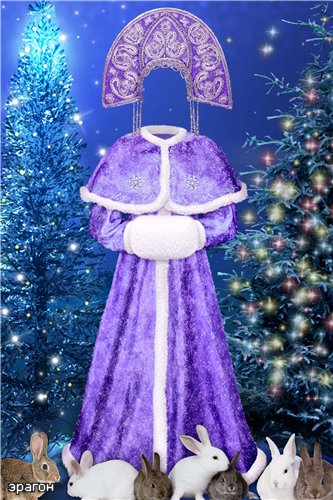 Новогодний шаблон для фотошопа - Снегурочка с зайчатами |