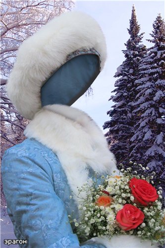 Женский шаблон для фотошопа – Снегурочка с цветами |